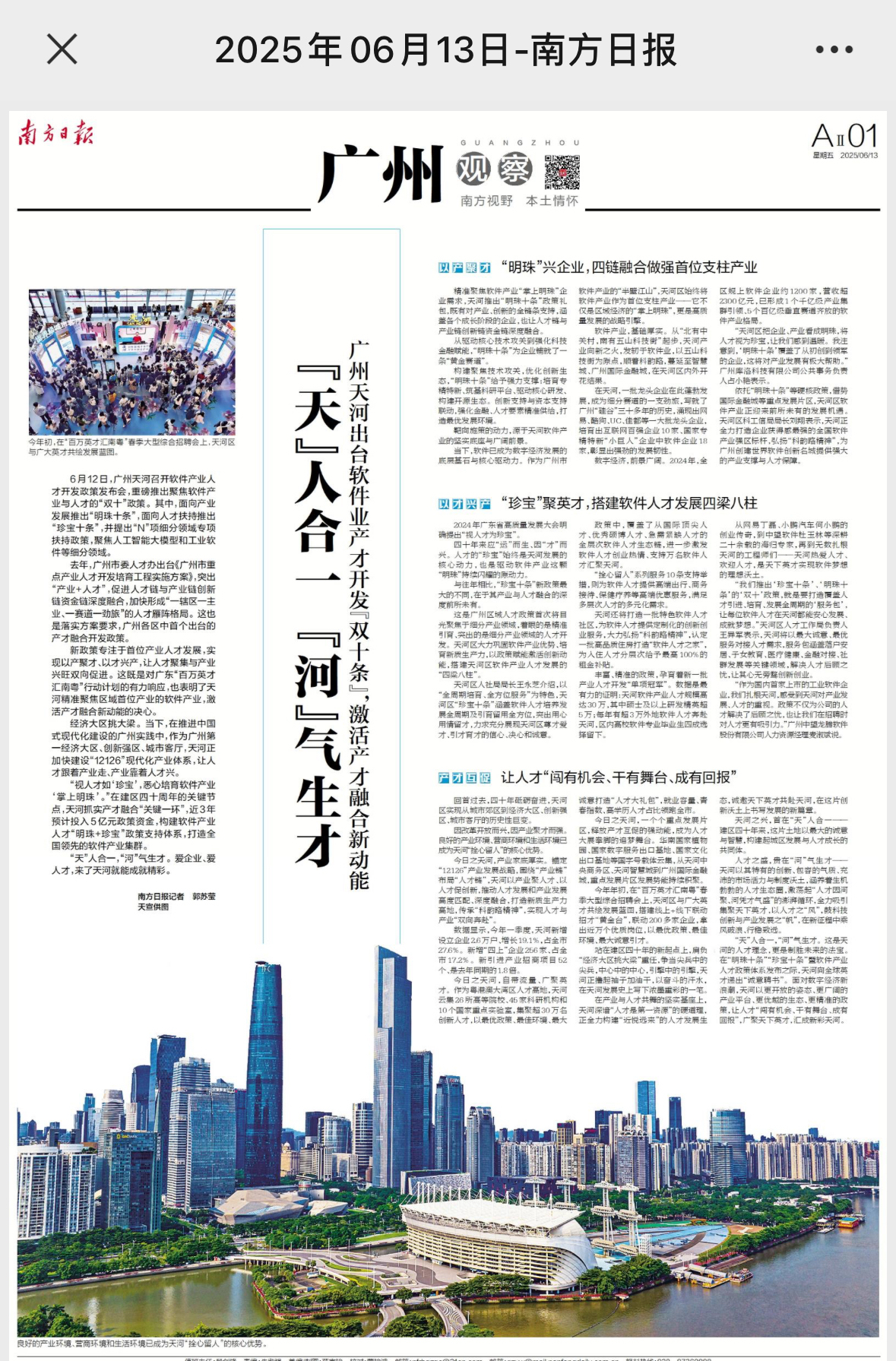 “视人才如‘珍宝’,悉心培育软件产业‘掌上明珠’。”在建区四十周年的关键节点,天河抓实产才融合“关键一环”,近3年预计投入5亿元政策资金,构建软件产业人才“明珠+珍宝”政策支持体系,打造全国领先的软件产业集群。